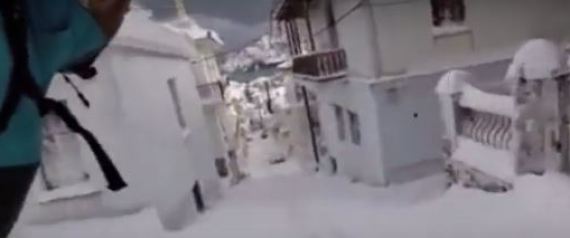 Snowboard ανάμεσα στα σπίτια στη Σκόπελο.Kι ενώ η Σκόπελος αντιμετωπίζει σοβαρά προβλήματα για ημέρες λόγω της σφοδρής κακοκαιρίας που πλήττει τη χώρα μας ένας κάτοικος του νησιού αποφάσισε να εκμεταλλευτεί τα χιονισμένα σοκάκια του νησιού κάνοντας snowboard ανάμεσα σε σπίτια.