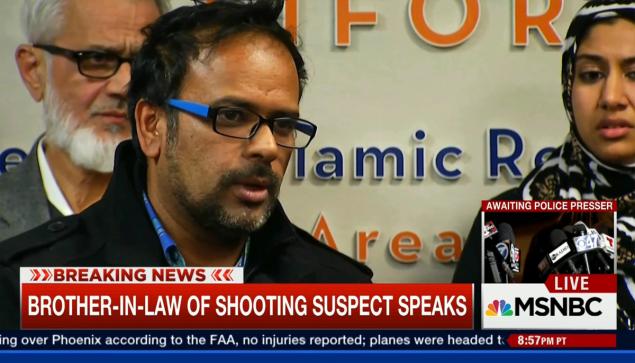 Σύμφωνα με μάρτυρες, ο Σαγιέντ Φαρούκ ήταν ο άνδρας που είχε εμπλακεί σε λογομαχία στη διάρκεια της εορτής, αποχώρησε εκνευρισμένος και στη συνέχεια επέστρεψε στον ίδιο χώρο ένοπλος, με επίσης ένοπλη γυναίκα ντυμένοι με μαύρες στρατιωτικές στολές κι άρχισαν να πυροβολούν τους ευρισκόμενους στην εκδήλωση.