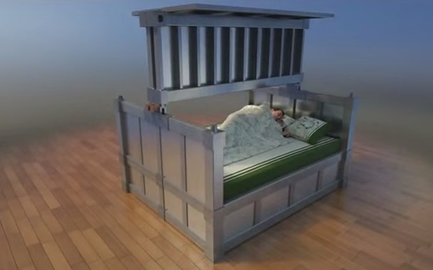 Do you lie in bed at night worrying that an earthquake could strike at any moment, burying you in a heap of rubble?This ‘earthquake-proof’ bed looks utterly terrifying.