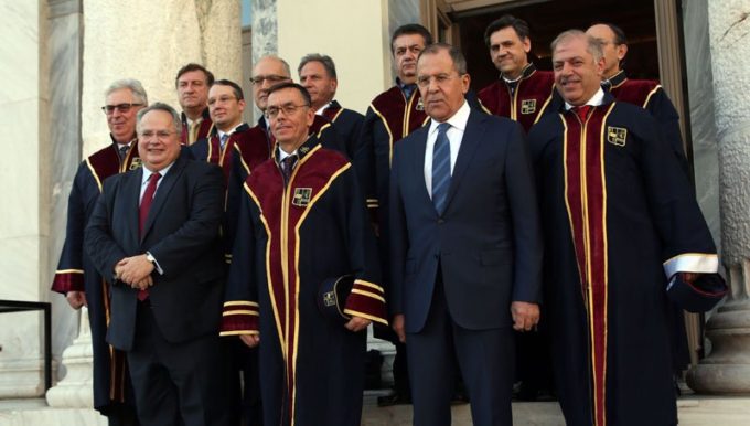 Στην κατάμεστη αίθουσα του Δημοτικού Θεάτρου Πειραιά, πραγματοποιήθηκε το απόγευμα της Τετάρτης, η τελετή αναγόρευσης του ρώσου υπουργού Εξωτερικών Σεργκέι Βικτόροβιτς Λαβρόφ, σε επίτιμο διδάκτορα του Πανεπιστημίου Πειραιώς, της Σχολής Οικονομικών, Επιχειρηματικών και Διεθνών Σπουδών, του Τμήματος Διεθνών και Ευρωπαϊκών Σπουδών. Την εκδήλωση την οποία παρακολούθησε πλήθος εκπροσώπων της πανεπιστημιακής κοινότητας, του πολιτικού κόσμου, όπως και των δημοτικών αρχών της πόλης του Πειραιά, προσφώνησε ο πρύτανης του Πανεπιστημίου Πειραιώς, Νικόλαος Γεωργόπουλος και ο υπουργός Εξωτερικών Νίκος Κοτζιάς, ενώ στο έργο του τιμωμένου αναφέρθηκε ο κοσμήτορας της Σχολής Οικονομικών Επιχειρηματικών και Διεθνών Σπουδών του Πανεπιστημίου Πειραιώς, Άγγελος Κότιος.