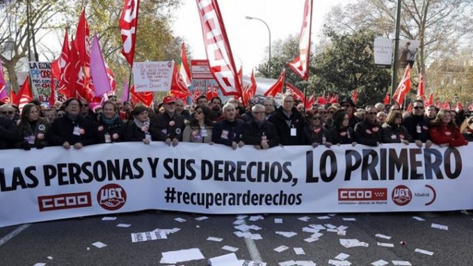 Οι πρόεδροι των συνδικάτων CCOO και UGT, Ιγνάθιο Φερνάντεθ Τόσο και Πέπε Άλβαρεθ αντίστοιχα, τόνισαν ότι οι διαδηλώσεις θα συνεχιστούν «για όσο καιρό χρειαστεί προκειμένου να ανακτήσουμε τα χαμένα μας δικαιώματα».