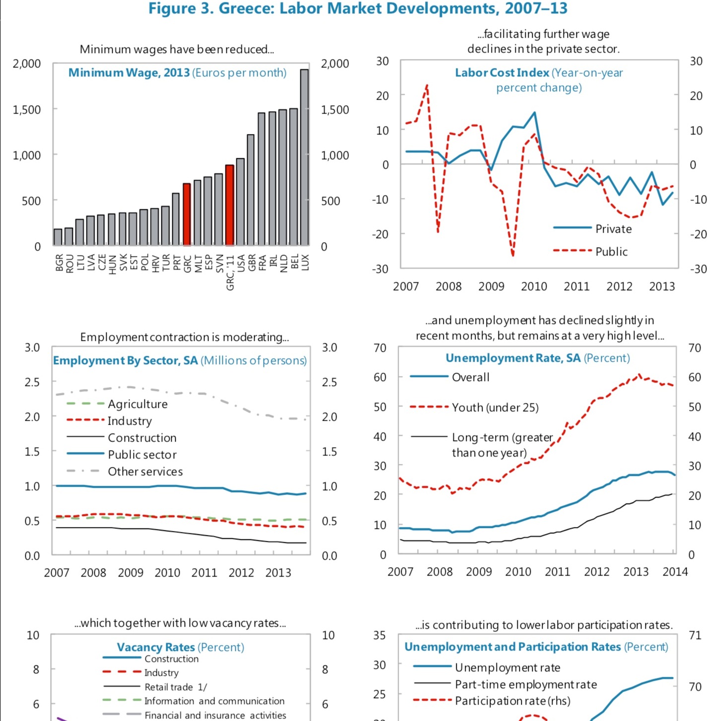 Ο ελάχιστος βασικός μισθός μειώθηκε περαιτέρω ακολουθώντας ανάλογη πορεία και στον ιδιωτικό τομέα και τα επίπεδα ανεργίας και απασχόλησης παρέμεναν σε άθλια οικονομικά επίπεδα!